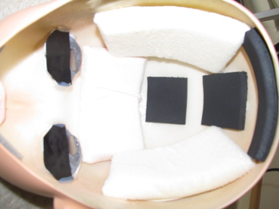 アゴ・鼻が当たる部分は、柔らかいウレタンを使用します。