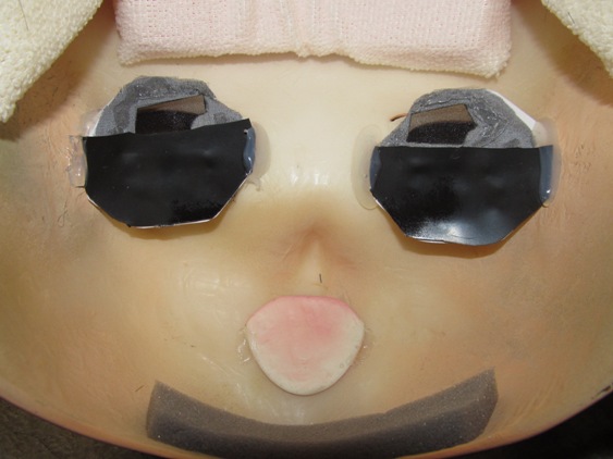 面素体の目の部分には大きな穴が開いてますので、台紙が必要となります。今回は強度を考えて薄いアクリル板を使用。