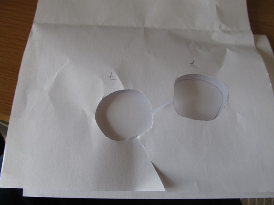 目を作成した際、ぬこ面の目の形をトレースした紙を残しておきます。